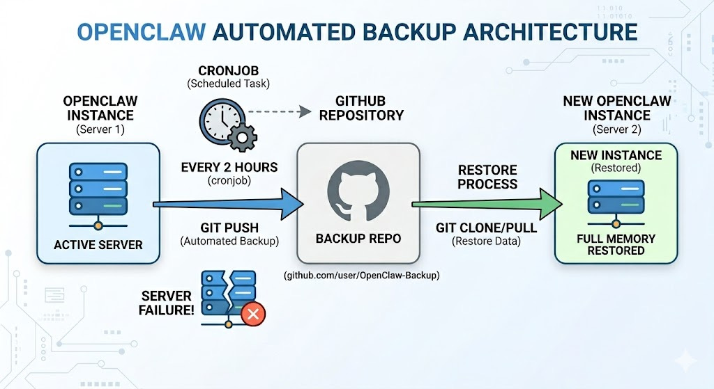 My OpenClaw backs itself up to GitHub every 2 hours. Server dies? Spin up a new one, full memory restored. Want to migrate to a stronger machine? Spin up a new server, copy the memory, fully restored. Generated junk in memory along the way? Roll back to a clean snapshot.