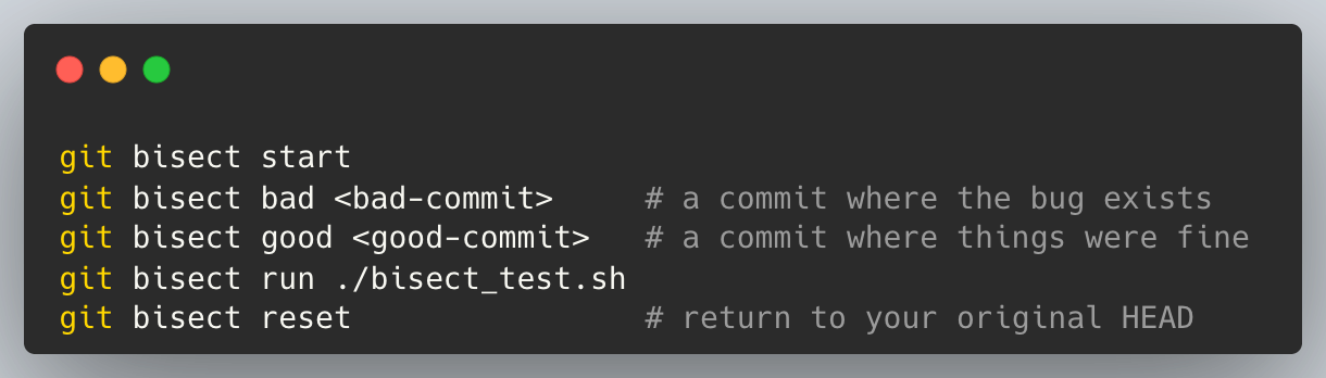 Git Bisect is a standard GIT tool that helps you find the commit that introduced a bug. It works by performing a binary search between a known good commit and a known bad commit.