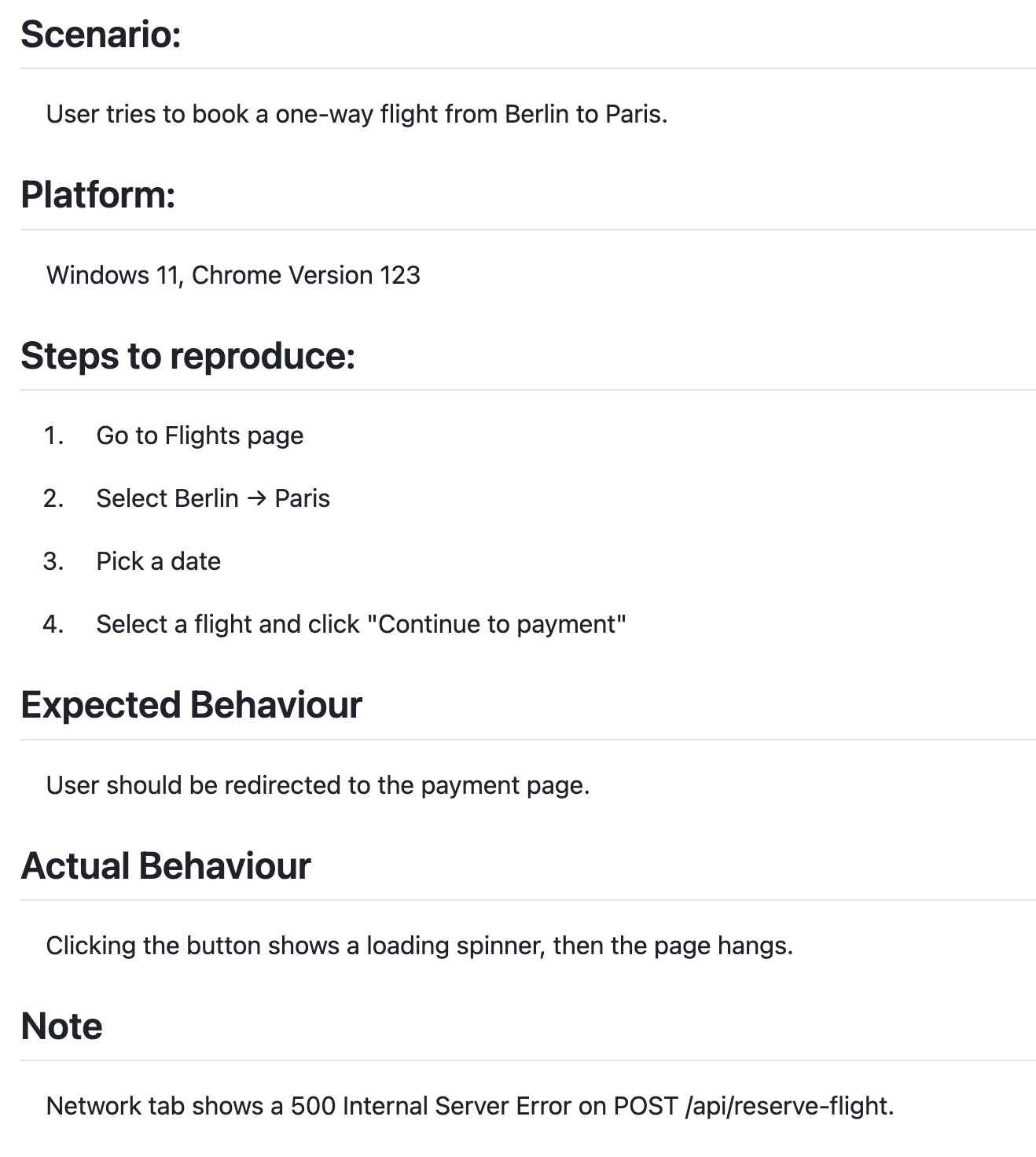 ❌ Bad bug report: